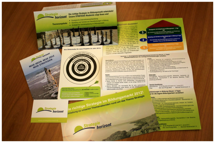 Der Markt für Weiterbildungsdienstleistungen lässt sich nicht aus der Ferne studieren. Unser Anspruch ist: Neue Tendenzen früh erkennen, spüren, wie die Kunden unserer Kunden „ticken" und sich durch neue, gut gemachte Angebote, inspirieren zu lassen. Deshalb sind wir zum Beispiel stets auf der Berliner Weiterbildungsmesse „Marktplatz Bildung" zu finden. Dort treffen wir bestehende Kunden und jedes Mal auch viele neue Anbieter (die oft genug das Bildungsblatt und Strategiehorizont auf Anhieb „einsortieren" können J). Zurück kommen wir dann mit einer Riesenmenge an Flyern und Broschüren, an Anregungen, Beispielen und Kontakten. Aus dieser bunten „Rohmasse" gewinnen wir konkrete Empfehlungen und strategische Hinweise für unsere Kunden. Denn solide Beratung erfordert echte Kundennähe. Deshalb erkunden, vergleichen und analysieren wir selbst... und Sie profitieren davon durch unsere Empfehlungen.